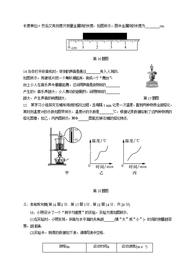 13.小刚学了长度测量以后,在分组探究活动中,估计教室门高约为2.1________(填上合适的长度单位);然后又用刻度尺测量金属块的长度,如图所示,图中金属块的长度为________cm.