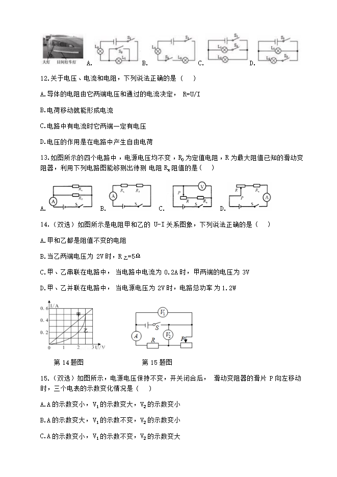 河南省第二实验中学2018-2019学年九年级物理上学期期中试卷(无答案)