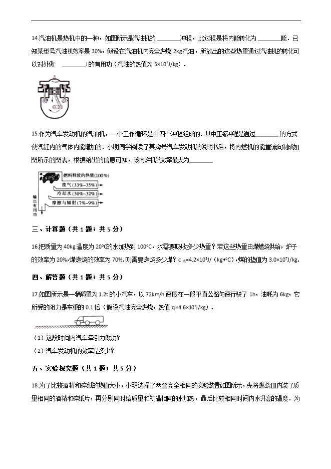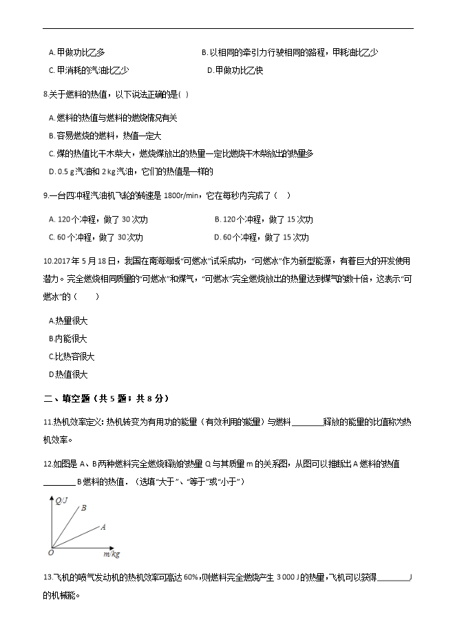 - 13682018-2019学年沪科版九年级物理 13.3内燃机 同步测试(附详细解析)