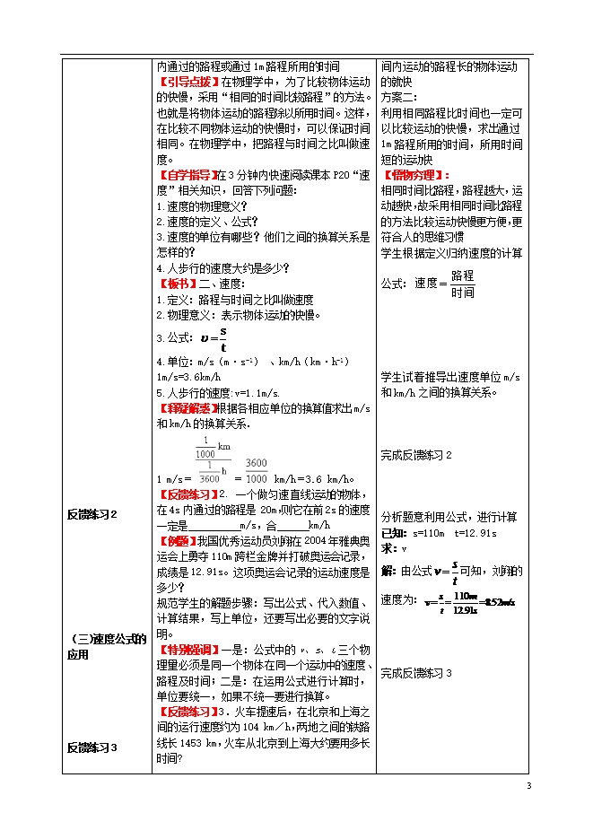 (新版)人教版八年级物理上册教学设计:1.3运动的快慢