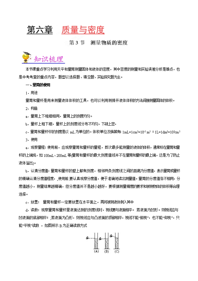 - 218【精品】6.3 测量物质的密度--2021-2022学年人教版八年级物理上册同步梳理拓展和练习(附解析)