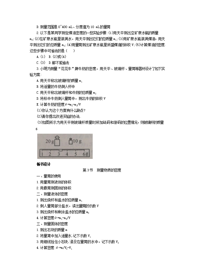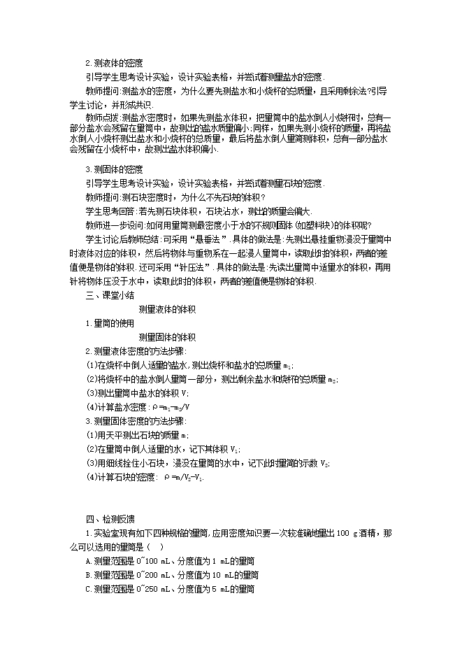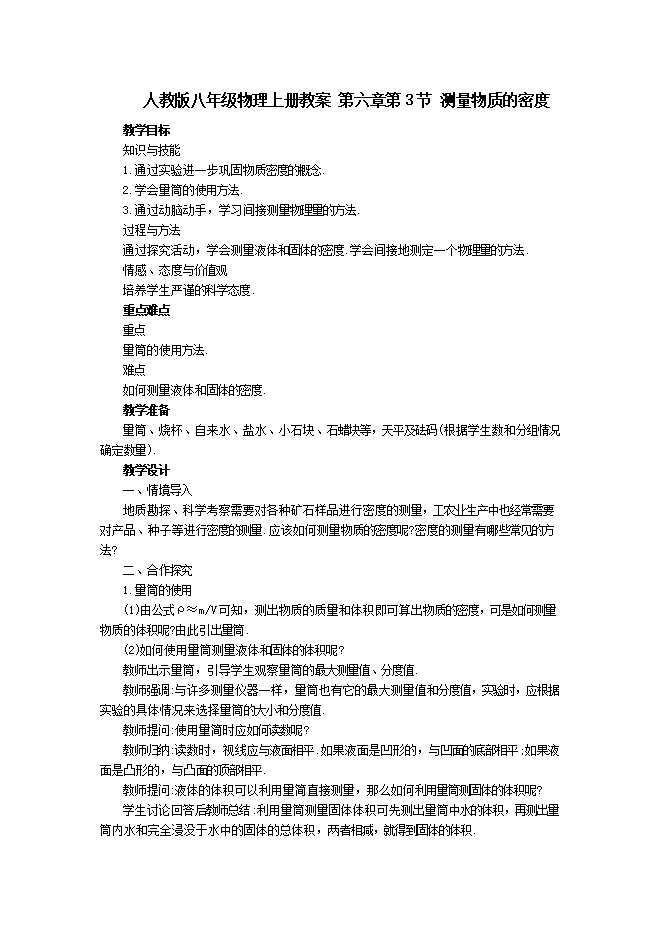 (新版)人教版八年级物理上册教学设计:6.3测量物质的密度