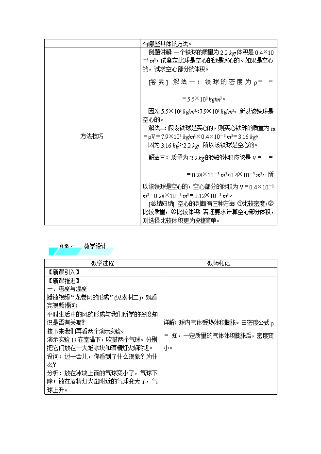(新版)人教版八年级物理上册教学设计:6.4密度与社会生活