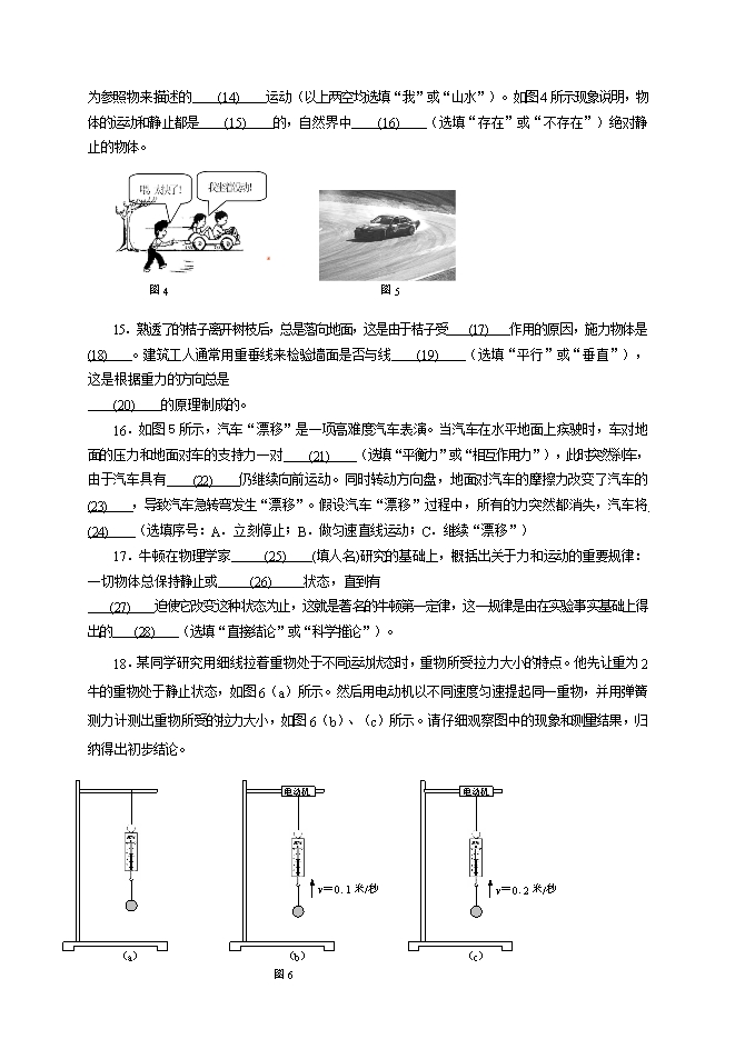 上海市浦东新区第一教育署2018-2019学年八年级(五四学制)上学期期末考试物理试题及答案