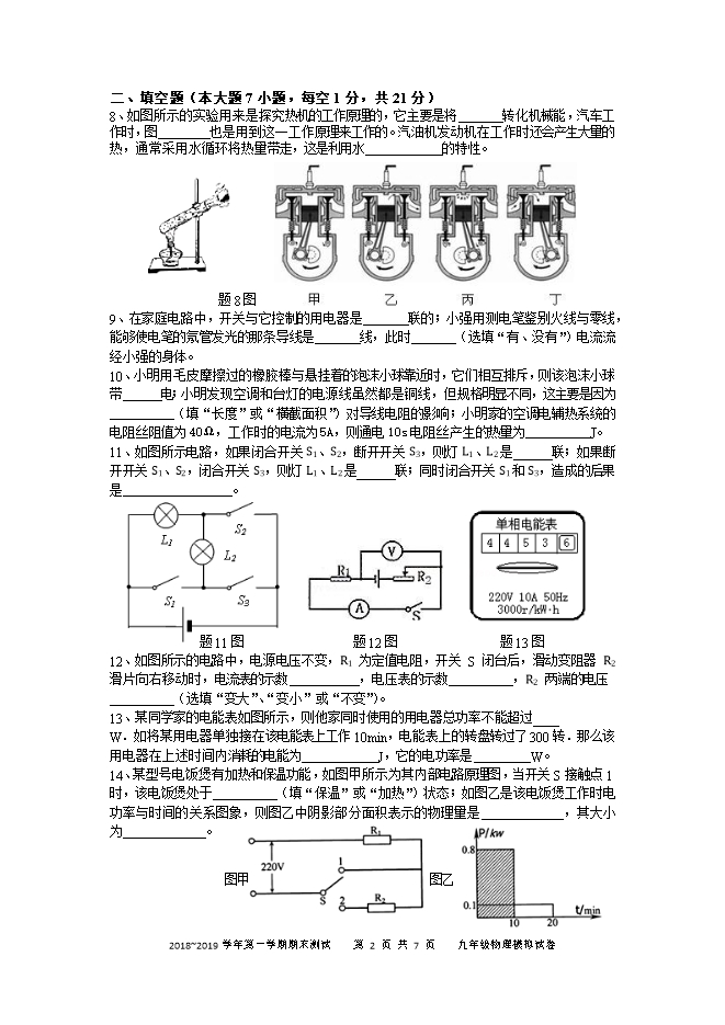 8、如图所示的实验用来是探究热机的工作原理的,它主要是将 转化机械能,汽车工作时,图 也是用到这一工作原理来工作的。汽油机发动机在工作时还会产生大量的热,通常采用水循环将热量带走,这是利用水 的特性。