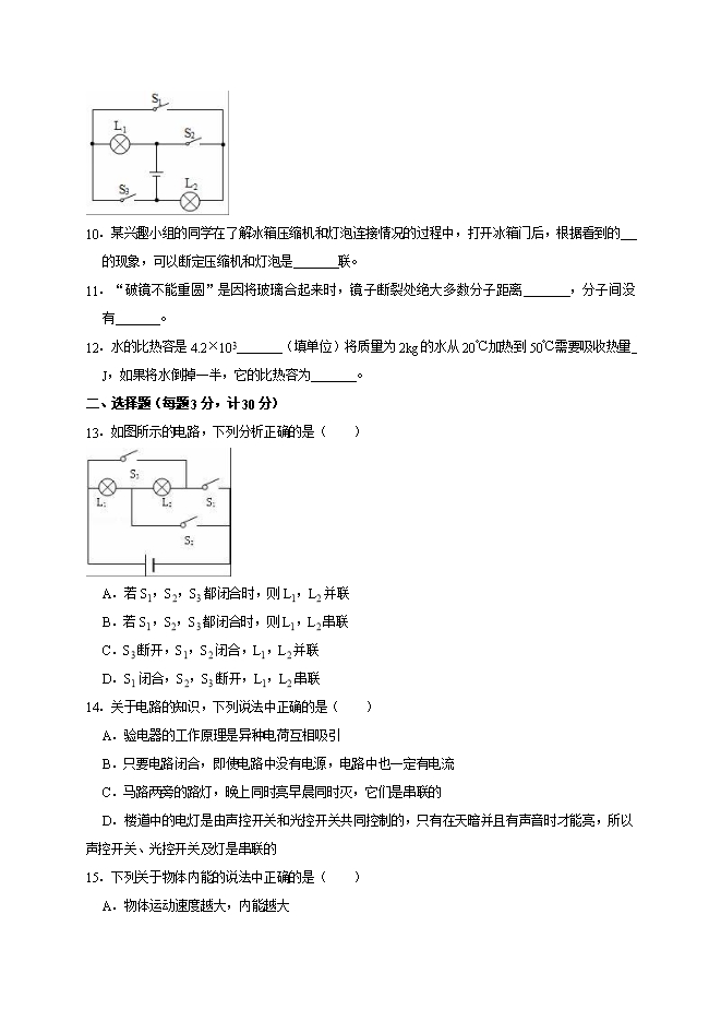 10.某兴趣小组的同学在了解冰箱压缩机和灯泡连接情况的过程中,打开冰箱门后,根据看到的 的现象,可以断定压缩机和灯泡是 联。