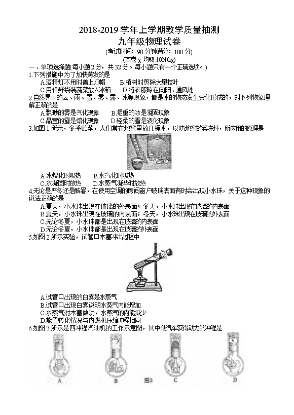 6.如图3所示是四冲程汽油机的工作示意图,其中使汽车获得动力的冲程是