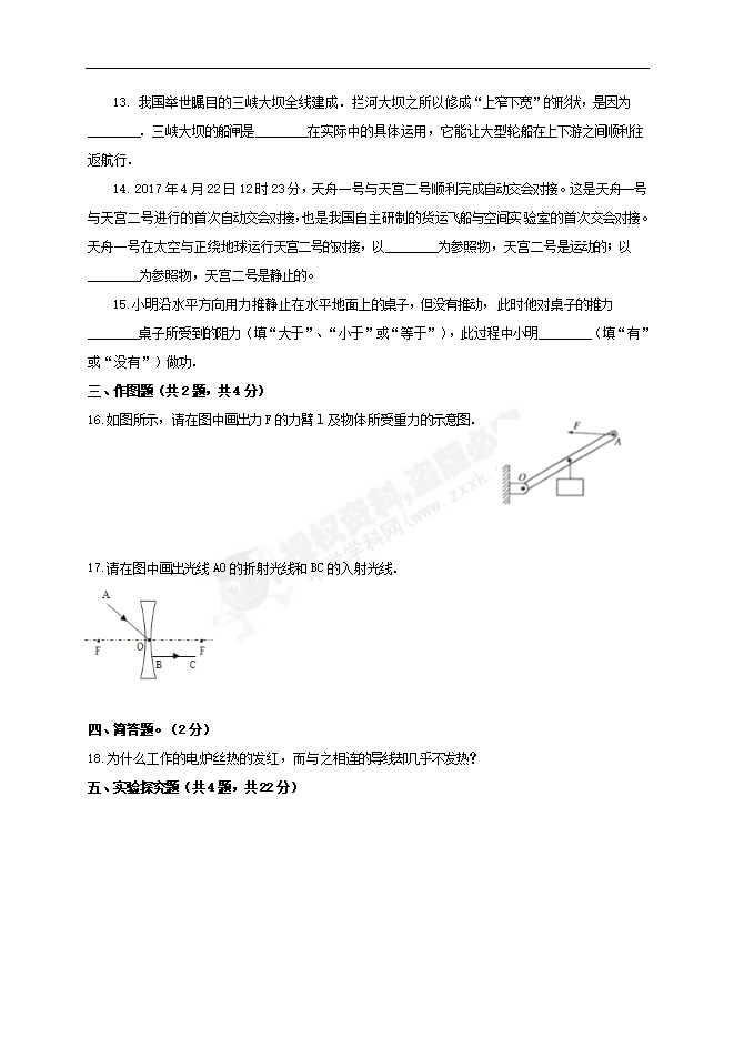 山西省右玉县第二中学、第三中学2019届九年级上学期期末联考物理试题及答案