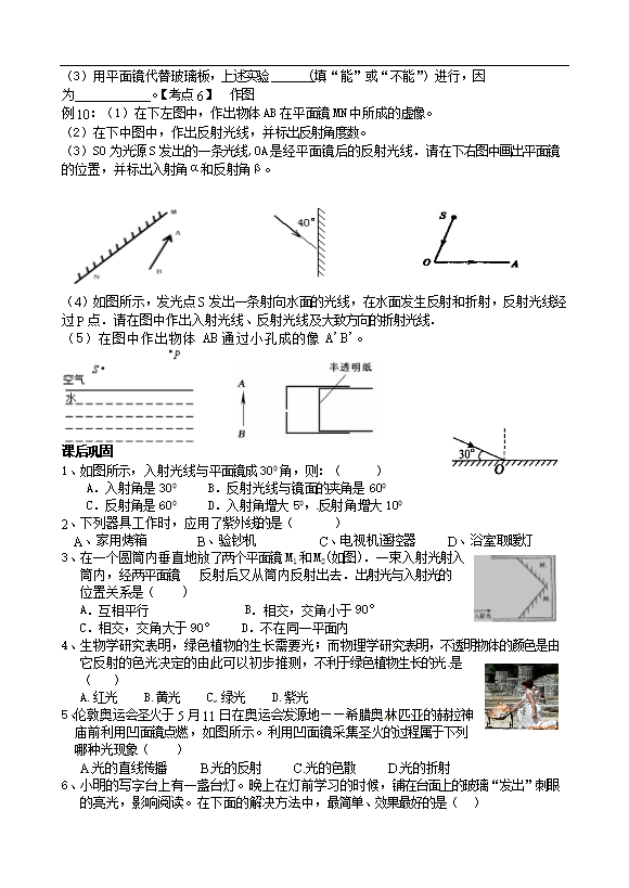 (2)入射角:________光线与法线的夹角;(3)反射角:_______ 光线与法线的夹角。