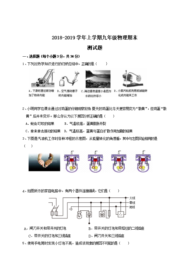 所属专辑: 全国各地2018-2019九年级上学期期末考试物理试题汇总
