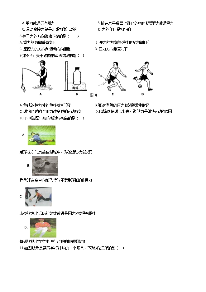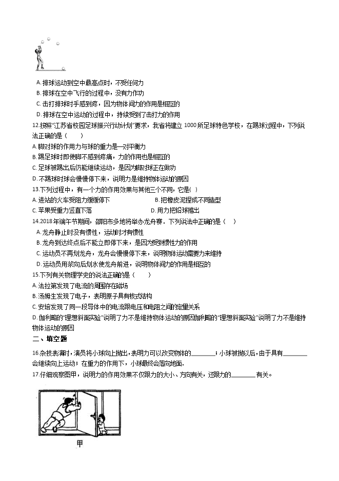 11.如图所示是某同学打排球的一个场景,下列说法正确的是( )