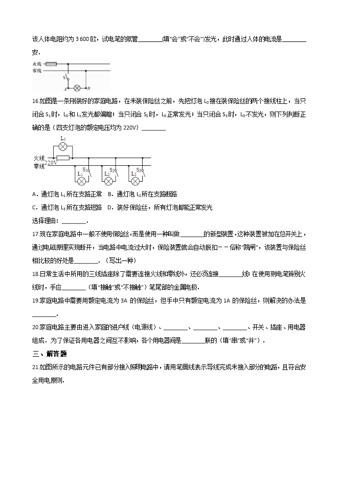 - 2362021年全国中考物理真题分类汇编专题:16 安全用电(配解析)