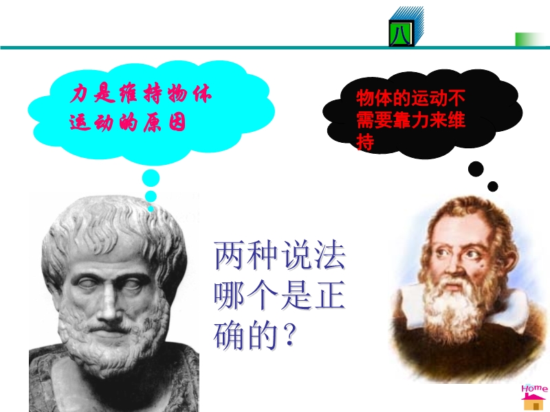 【内容简介】人教版物理八年级下册《8.1 牛顿第一定律》PPT课件,共有51张幻灯片。课件首先展示了亚里士多德和伽利略的两种关于力与运动的观点,然后引导学生设计实验进行探究,并且在实验结论的基础上引导学生进行总结和推理,让学生深入地认识了物体不受力作用时将怎样运动,最后总结了牛顿第一定律.