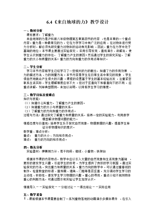 芜湖市第二十七中学:《6.4来自地球的力》PPT+教案