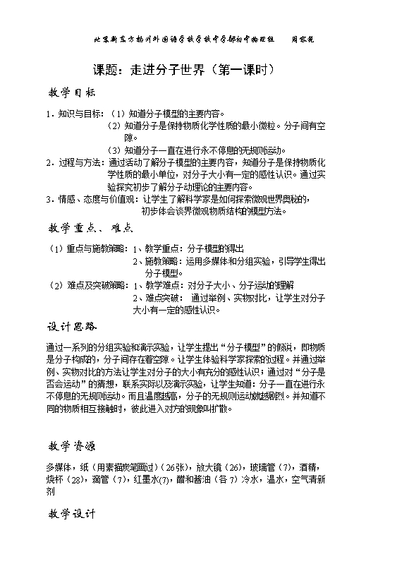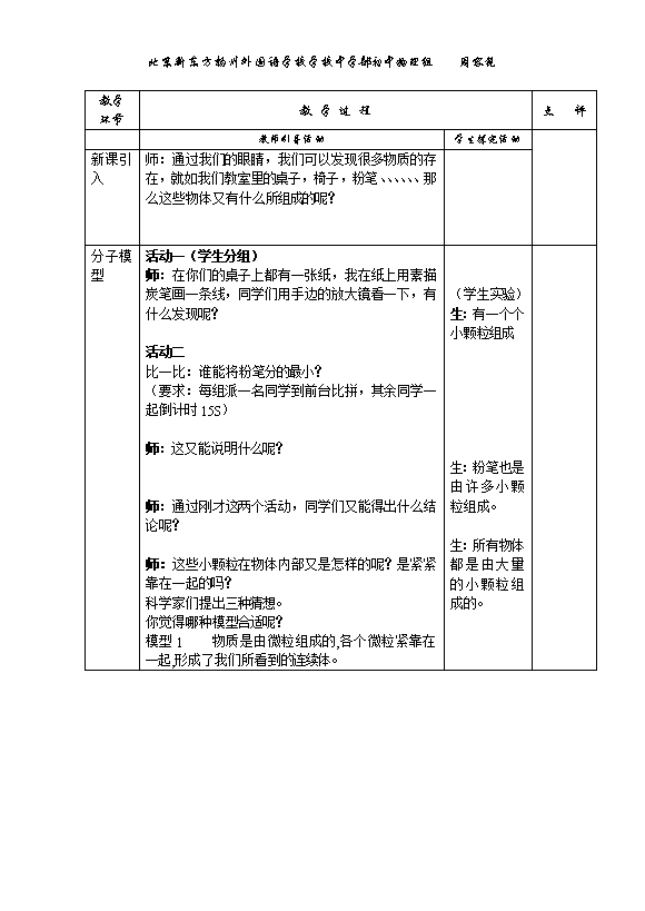 北京新东方扬州外国语学校:苏科版《7.1走进分子世界》ppt课件+教案