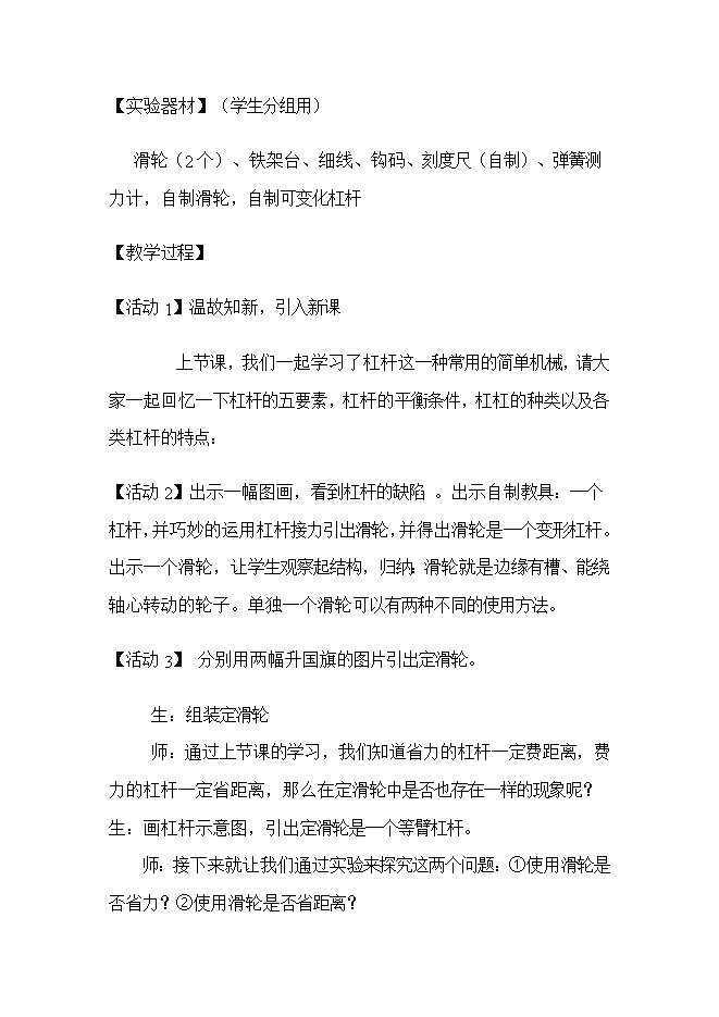 - 8102025春人教版八年级下册物理教学设计:12.3 滑轮(附教学反思)