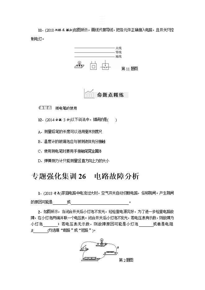 2019届人教版物理中考复习专项测试试题:第十八讲 生活用电