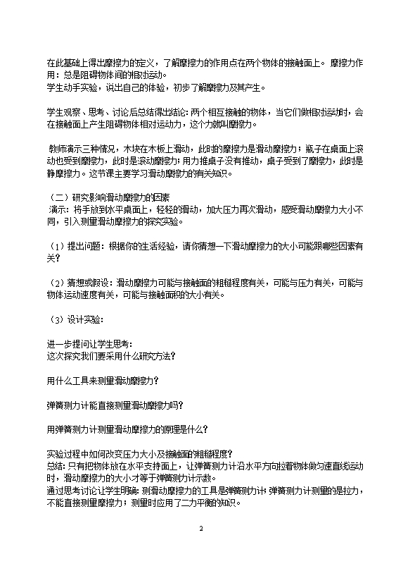 2018-2019人教版八年级物理下册《8.3摩擦力》教学设计5
