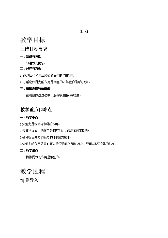 1.知道力是物体对物体的作用。