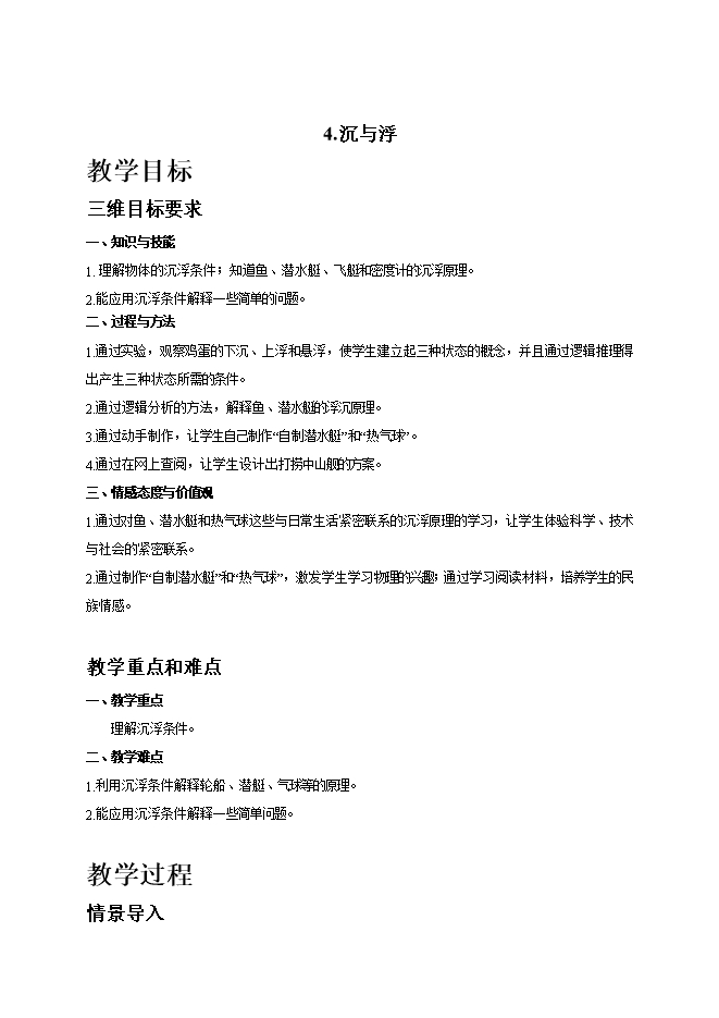 2019春教科版八年级下册物理教案,沉与浮2019年04月07日/UploadFiles/nopic.gif