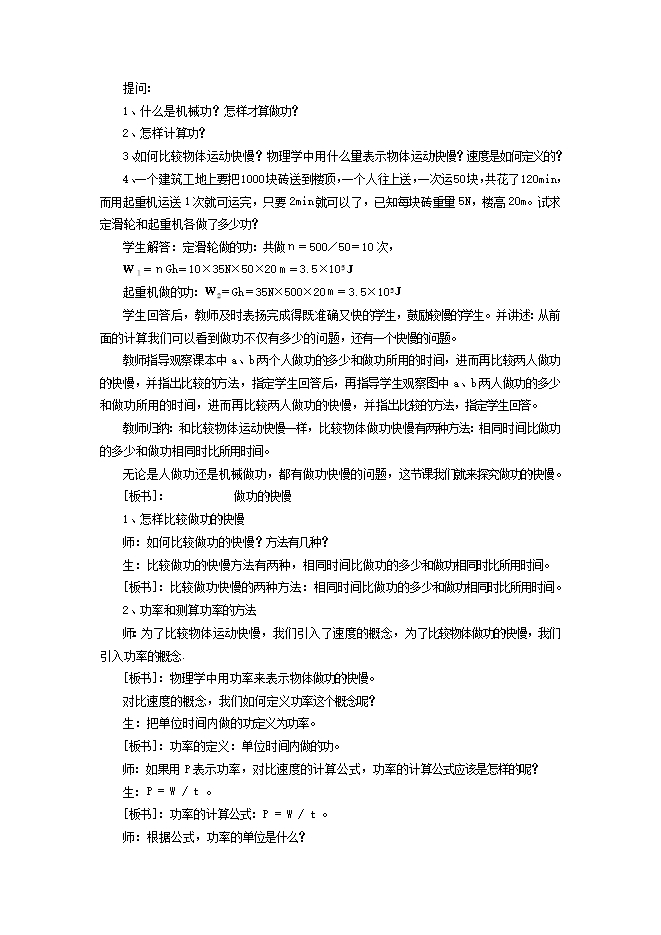 - 3232020春沪科版八年级物理下学期《10.4做功的快慢》教学设计(附教学反思)