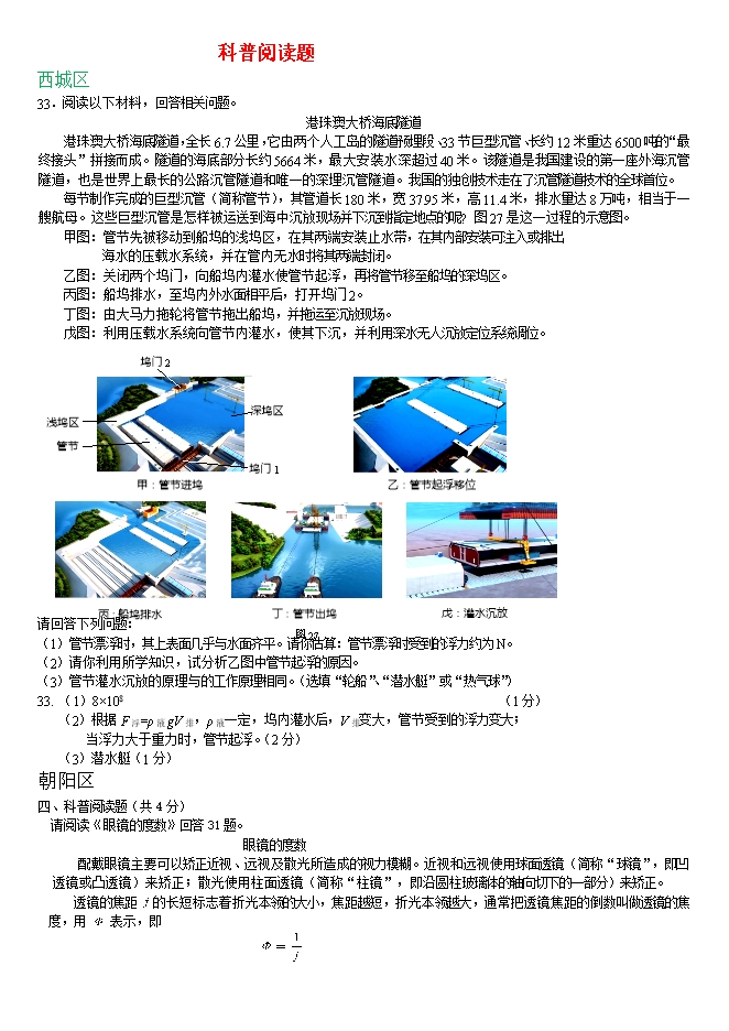 北京市各区2019年中考物理一模试卷精选汇编:科普阅读题