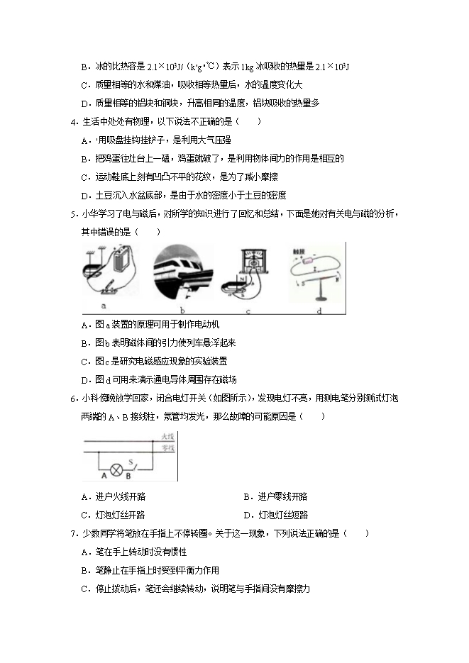 4.生活中处处有物理,以下说法不正确的是( )