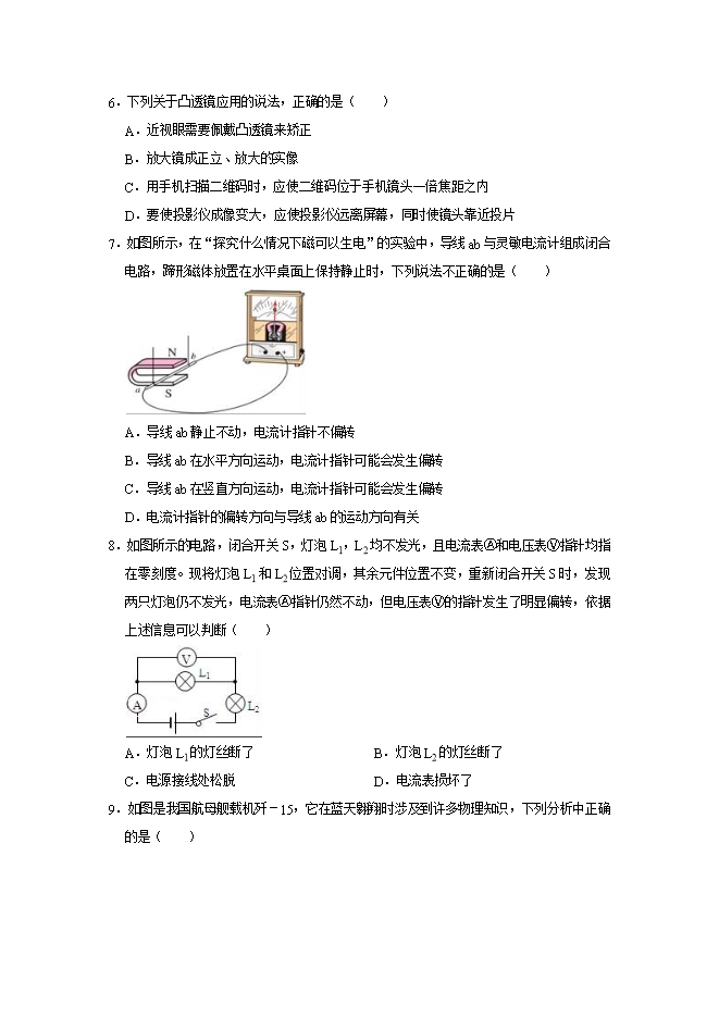 5.“五•一”节期间,在南山公园平静的湖水中,小红看到了“鸟在水中飞,鱼在云中游”的美丽画面,她所观察到的“飞鸟”和“游鱼”( )
