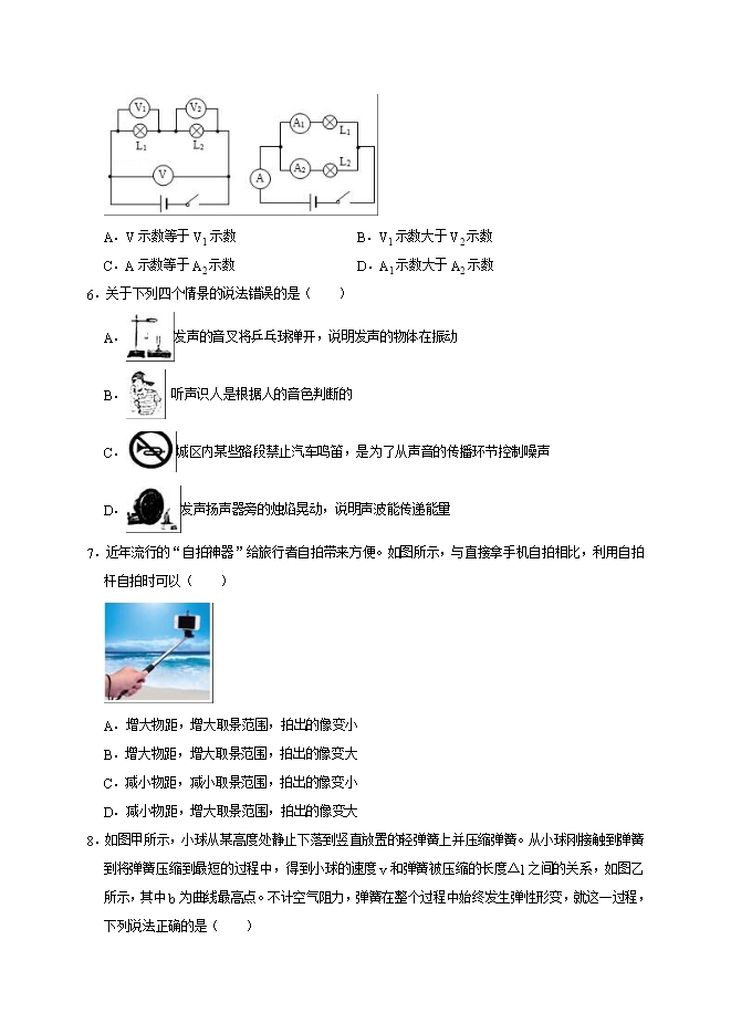 AB、由左图知,两灯串联,电压表V1测L1两端电压,V2测L2两端电压,V测电源电压,