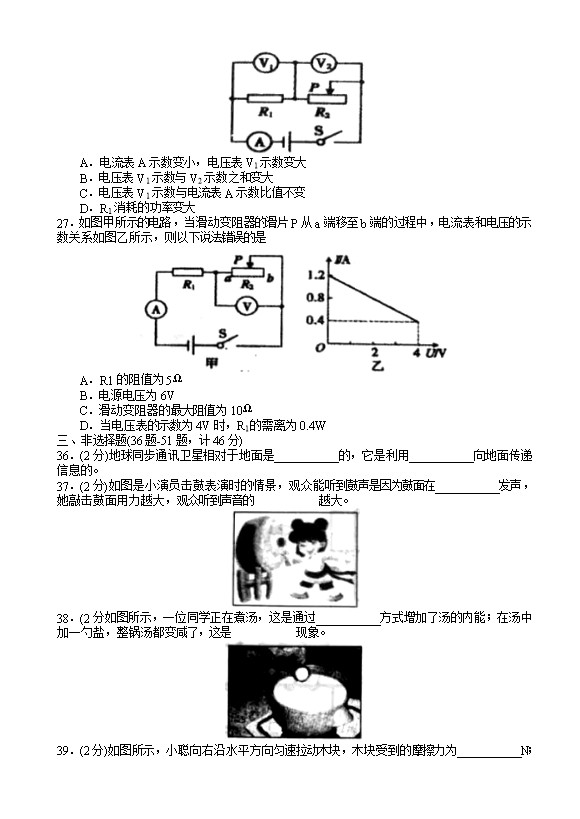 26.如图所示,闭合开关S,滑动变阻器的滑片P向右移动,下列说法正确的是