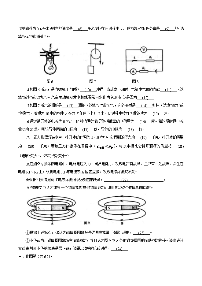上海市杨浦区1上海市杨浦区,2019届九年级中考二模物理试题2019年05月23日/UploadFiles/nopic.gif