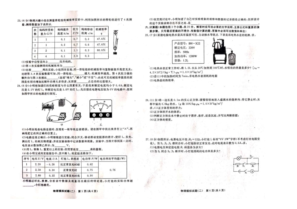 【内容简介】2019年山东省聊城市城区九年级第二次模拟考试物理试题(扫描版含答案)