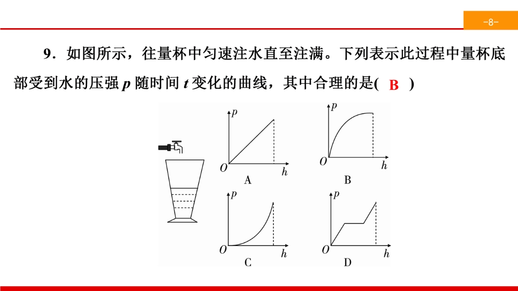 9.如图所示的电路中,电源两端的电压保持不变,R2为定值电阻.闭合开关 S,在滑动变阻器的滑片P向右滑动的过程关于电压表和电流表的示数变化,下列四个选项中,判断正确的是( )