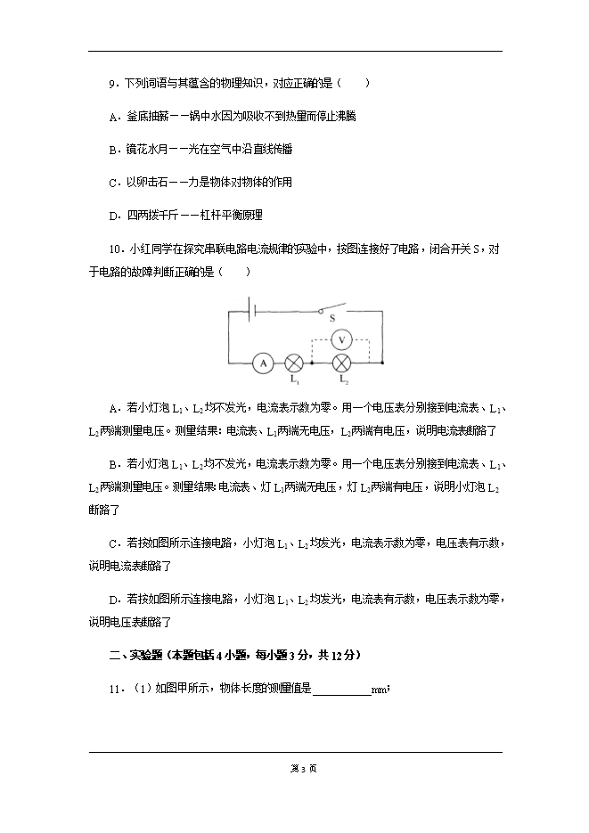 9.下列词语与其蕴含的物理知识,对应正确的是( )