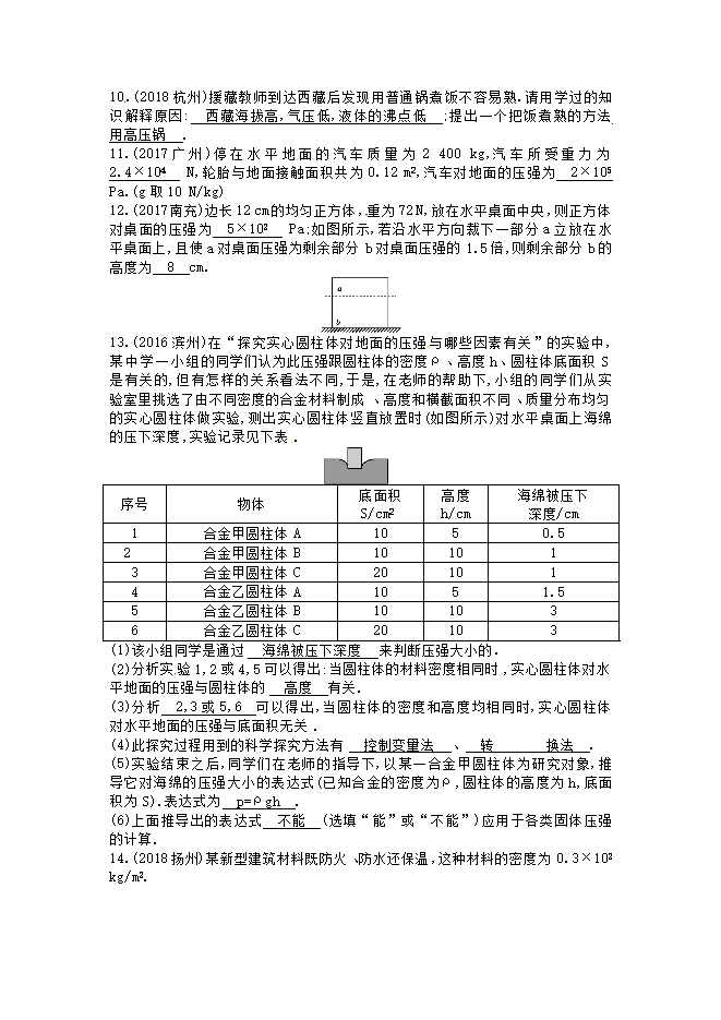 2019春人教版八年级物理下册练习,期末复习,压强2019年06月18日/UploadFiles/nopic.gif