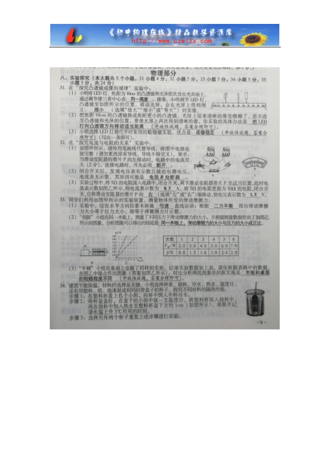- 293山西省2025年初中学业水平理化实验操作考试试题及评分细则(word版)