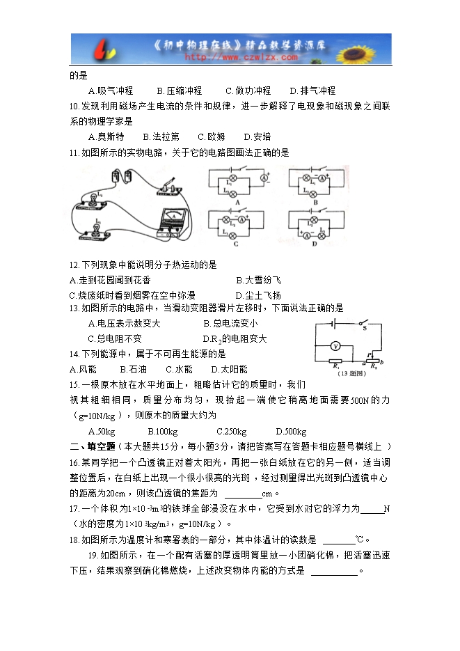 9.多数汽油机是由吸气、压缩、做功、排气四个冲程的不断循环来保证连续工作的,从能量转化的角度看,存在着内能转化为机械能的过程的是