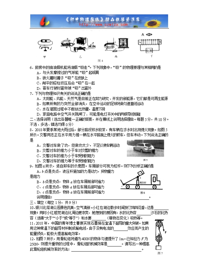 8.2018年夏季某地大雨过后,部分路段积水较深,有车辆在涉水时出现熄火现象。如图5所示。交警同志正在水平用力推一辆在水平路面上熄火的轿车,但车未动。下列说法正确的是
