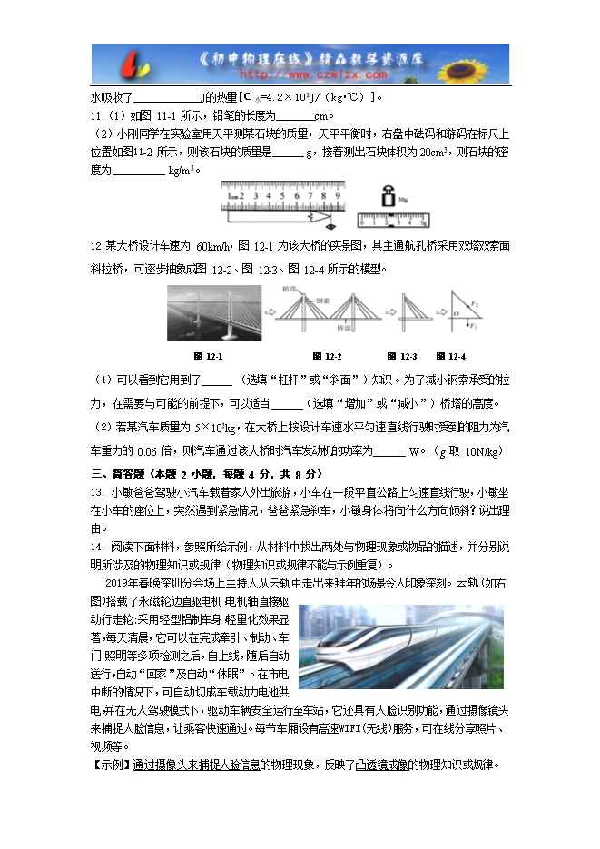 11.(1)如图 11-1 所示,铅笔的长度为 cm。