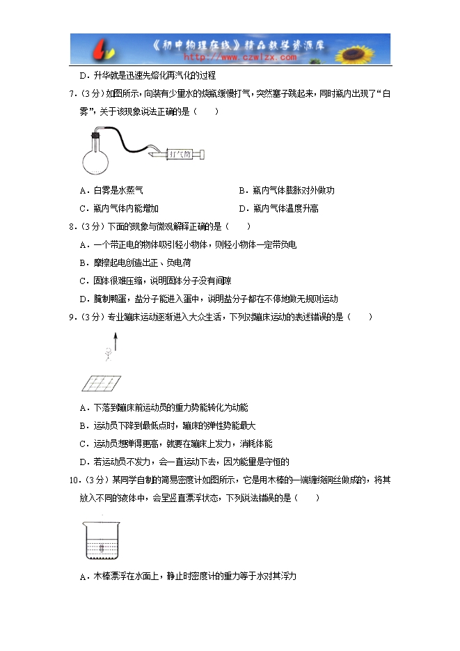 6.【解答】解:A、霜是空气中的水蒸气遇冷凝华形成的冰晶。故A正确;