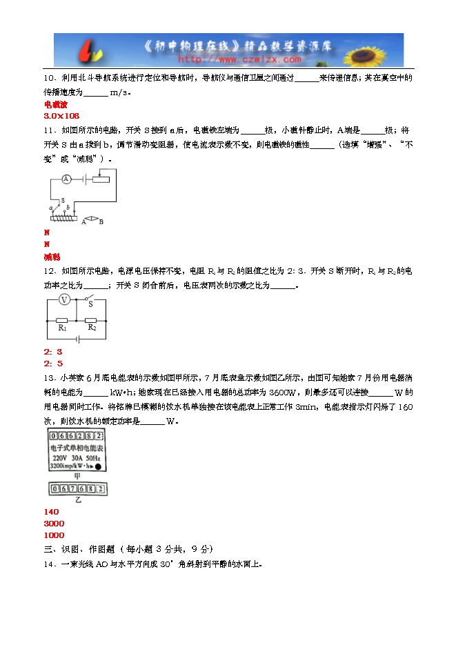 10.利用北斗导航系统进行定位和导航时,导航仪与通信卫星之间通过______来传递信息;其在真空中的传播速度为______ m/s。