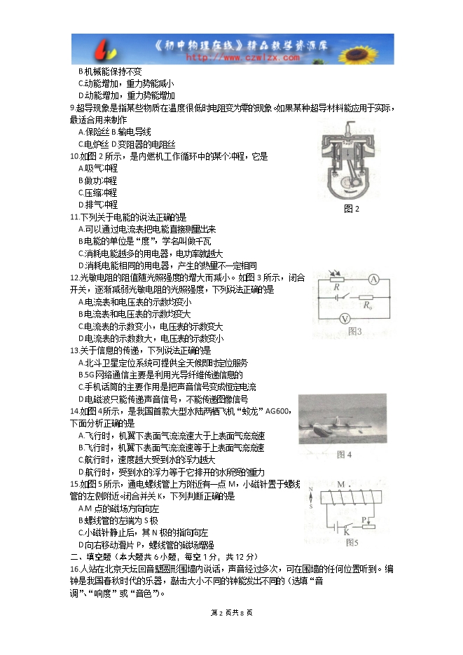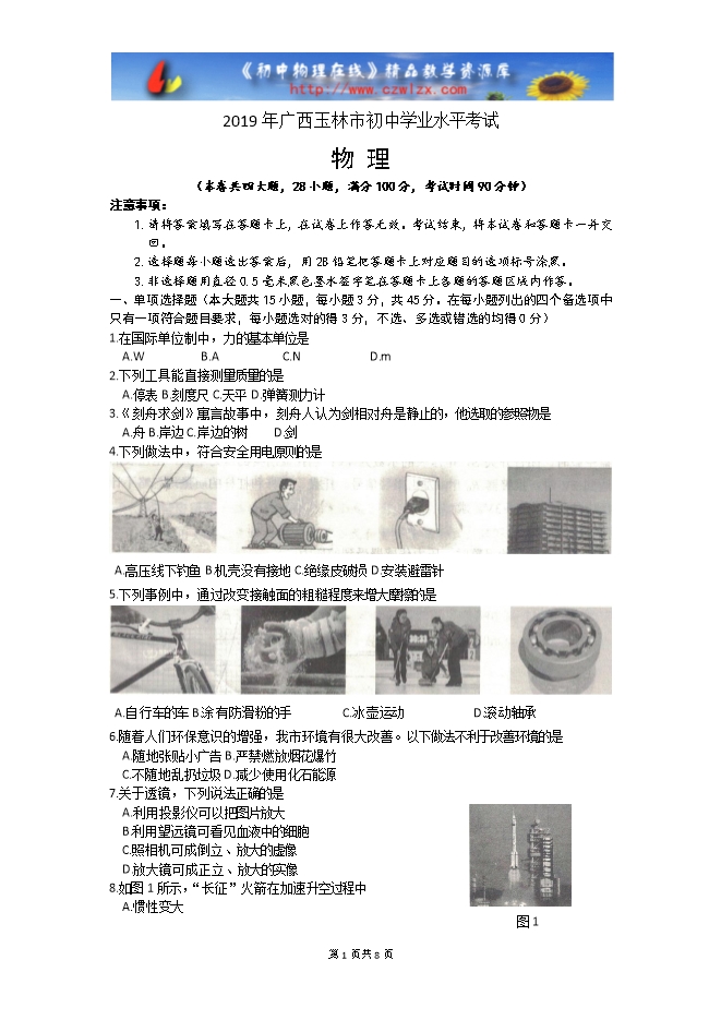 2019年广西玉林市初中学业水平考试物理试卷(word版,含答案)