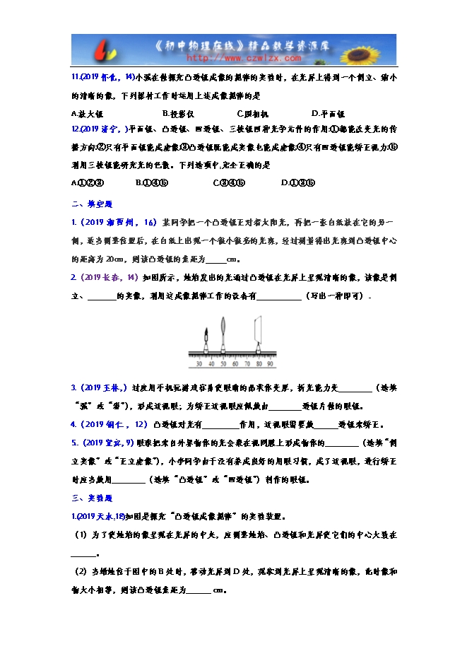 2019年中考物理试题分类汇编(第03期):透镜及其应用专题