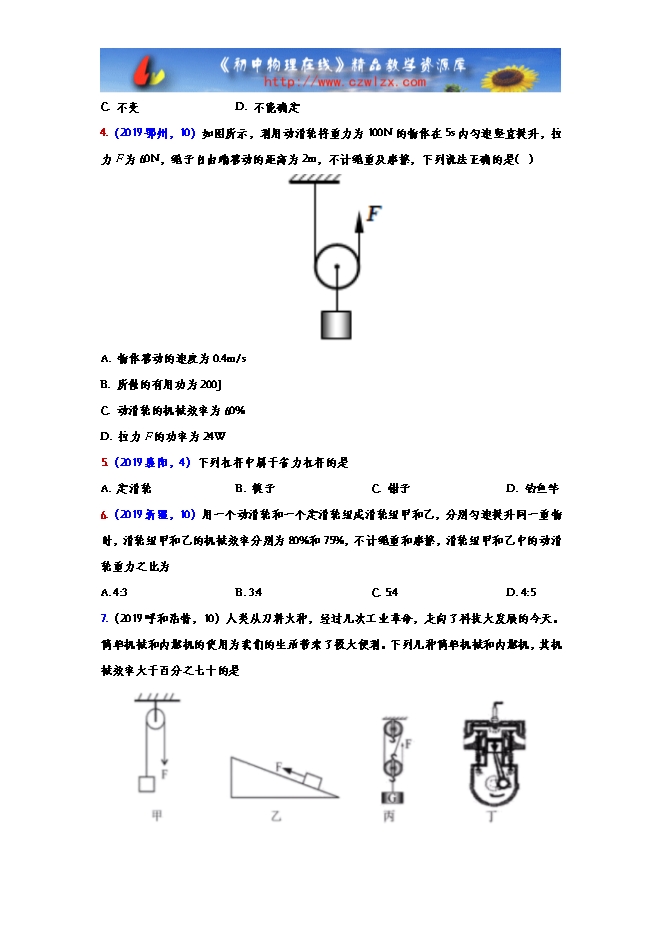 2019年中考物理试题分类汇编(第03期),简单机械2019年07月23日/UploadFiles/nopic.gif
