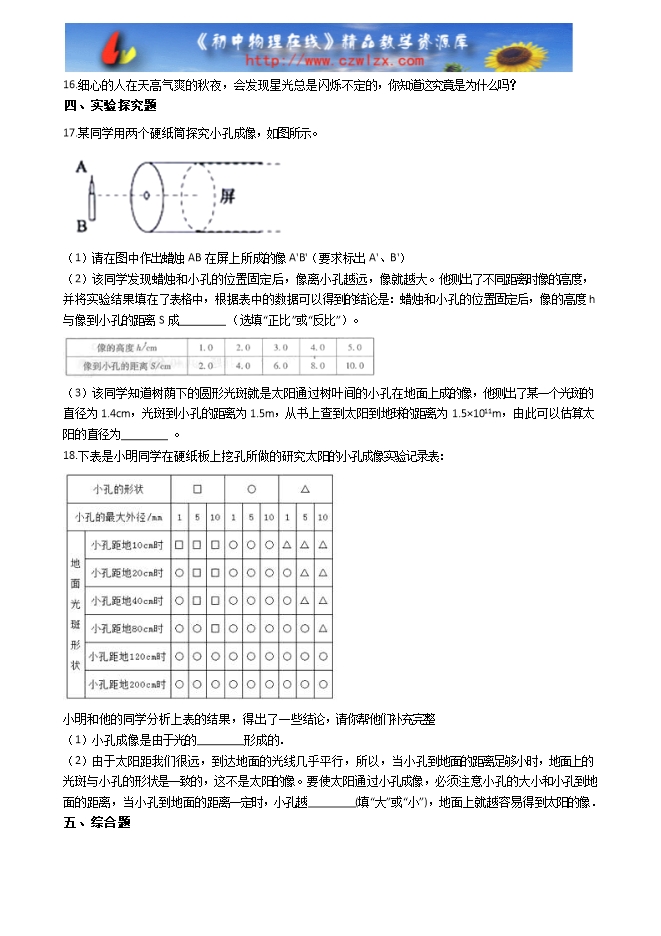 C. 小孔成的像是倒立的实像 D. 小孔成的像是正立的实像