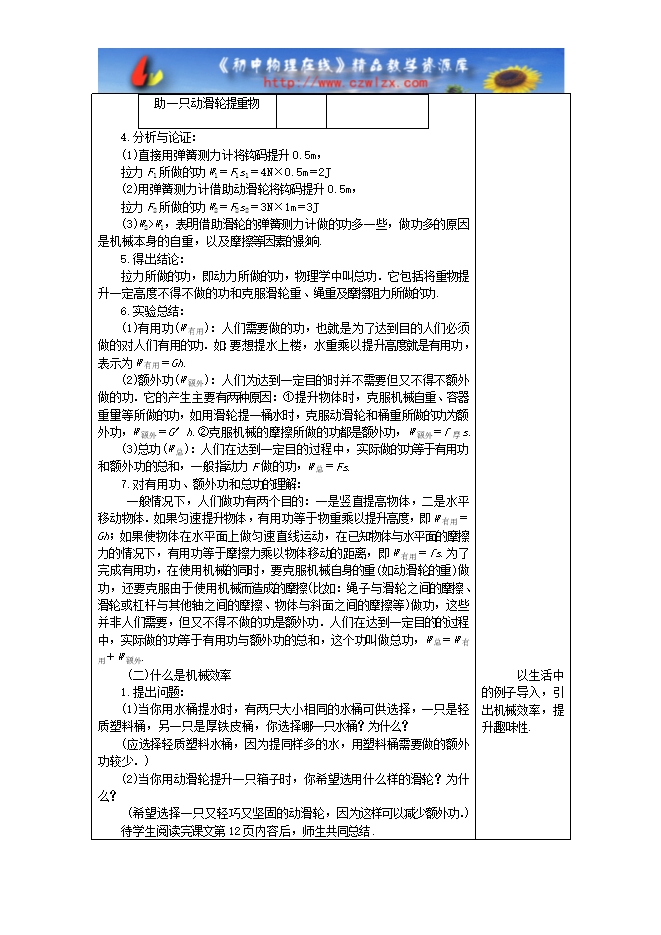 以生活中的例子导入,引出机械效率,提升趣味性.
