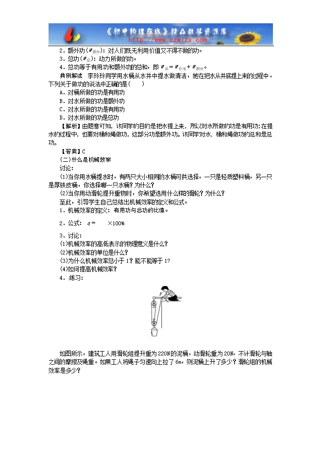 1.知道有用功、额外功和总功的含义,以及它们之间的关系。