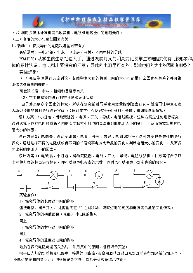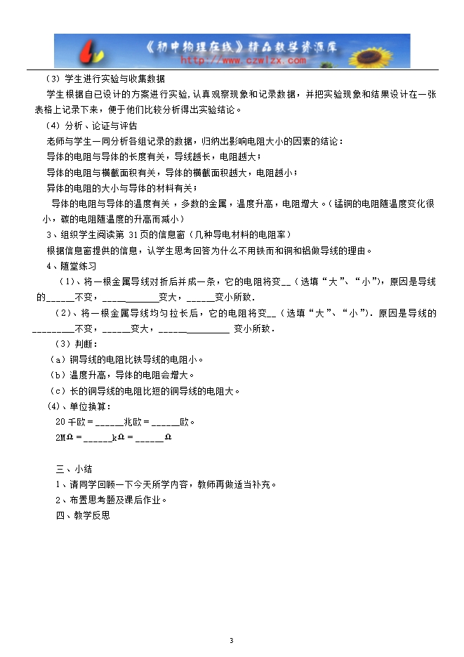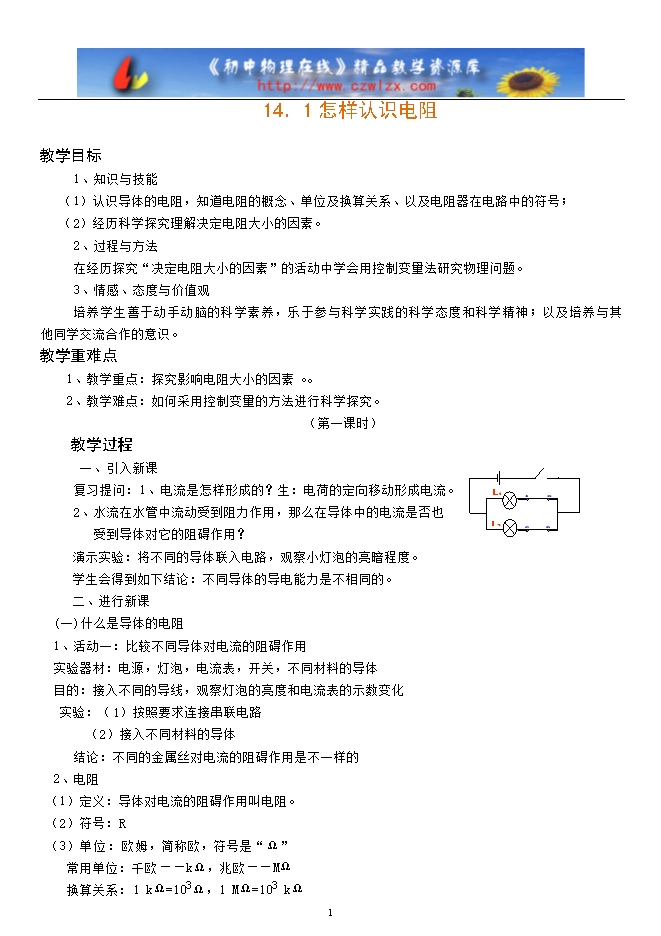 沪粤版九年级物理上册教案:14.1怎样认识电阻3