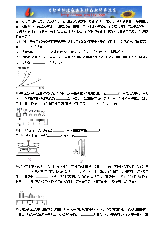【内容简介】一、单选题1.下列过程中,使加引号字的物体质量发生变化的是( )A. 一杯“水”结成“冰” B. 将一“矿石”由月球带回地球C. 将一“铁块”烧红 D. 氧气瓶中的“氧气”被用掉了一半2.天平是较精密的测量工具,砝码锈蚀或缺损了就不能再使用。如果砝码生锈(质量增大)或缺损,对称量质量的影响是( )。A. 若生锈,称得的质量比实际质量偏大 B. 若生锈,称得的质量比实际质量偏小C. 若缺损,称得的质量比实际质量偏小 D. 若缺损,称得的质量比实际质量不变3.下列说法正确的是( )A. 一物体被移到月球上质量将变小 B. 1㎏铁块的质量比1㎏木头质量大C. 一块冰熔化成水,其质量减少 D. 将铁块拉成铁丝,其质量不发生变化