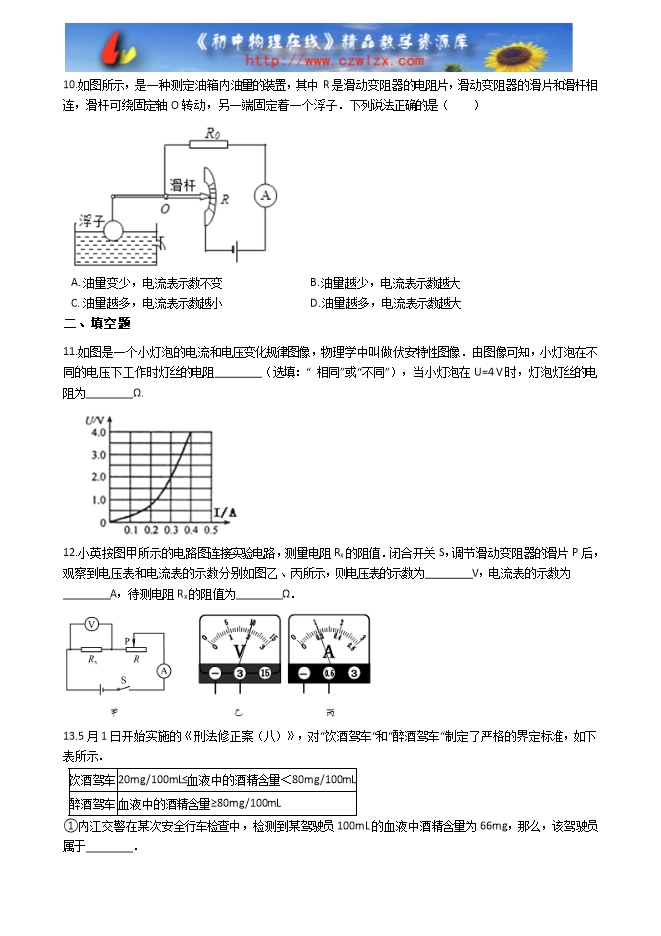 【内容简介】由欧姆定律I= 推得R=,下列说法中正确的是( )A. 导体的电阻与导体两端电压成正比 B. 导体的电阻与通过导体的电流成反比 C. 导体的电阻是导体本身的决定的,与导体两端是否存在电压无关;但可以由它两端的电压与通过它的电流比值可求出电阻值的大小 D. 以上说法都不对